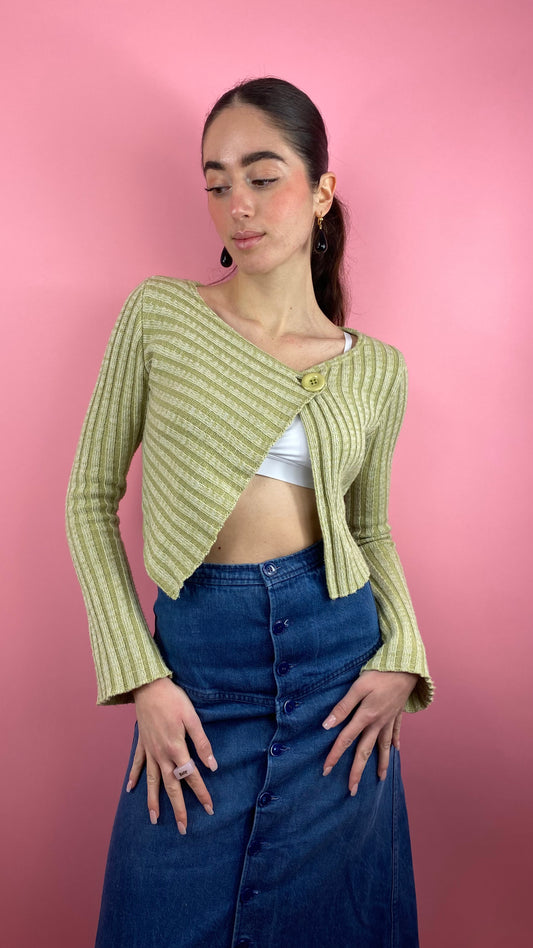 ÉpuiséPull vert court et ouvert