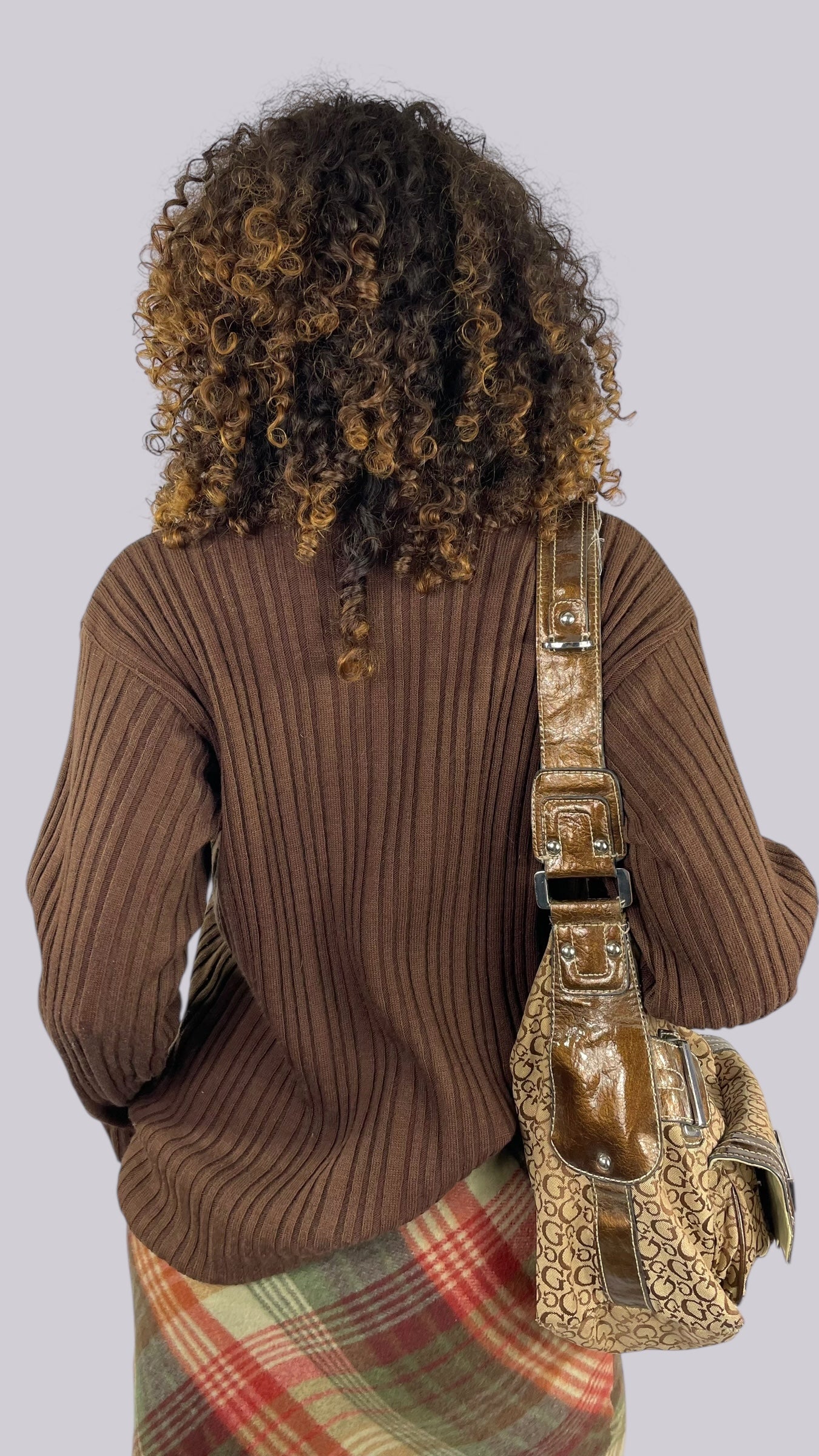 Pull marron col roulé en maille côtelée, mélange de laine.