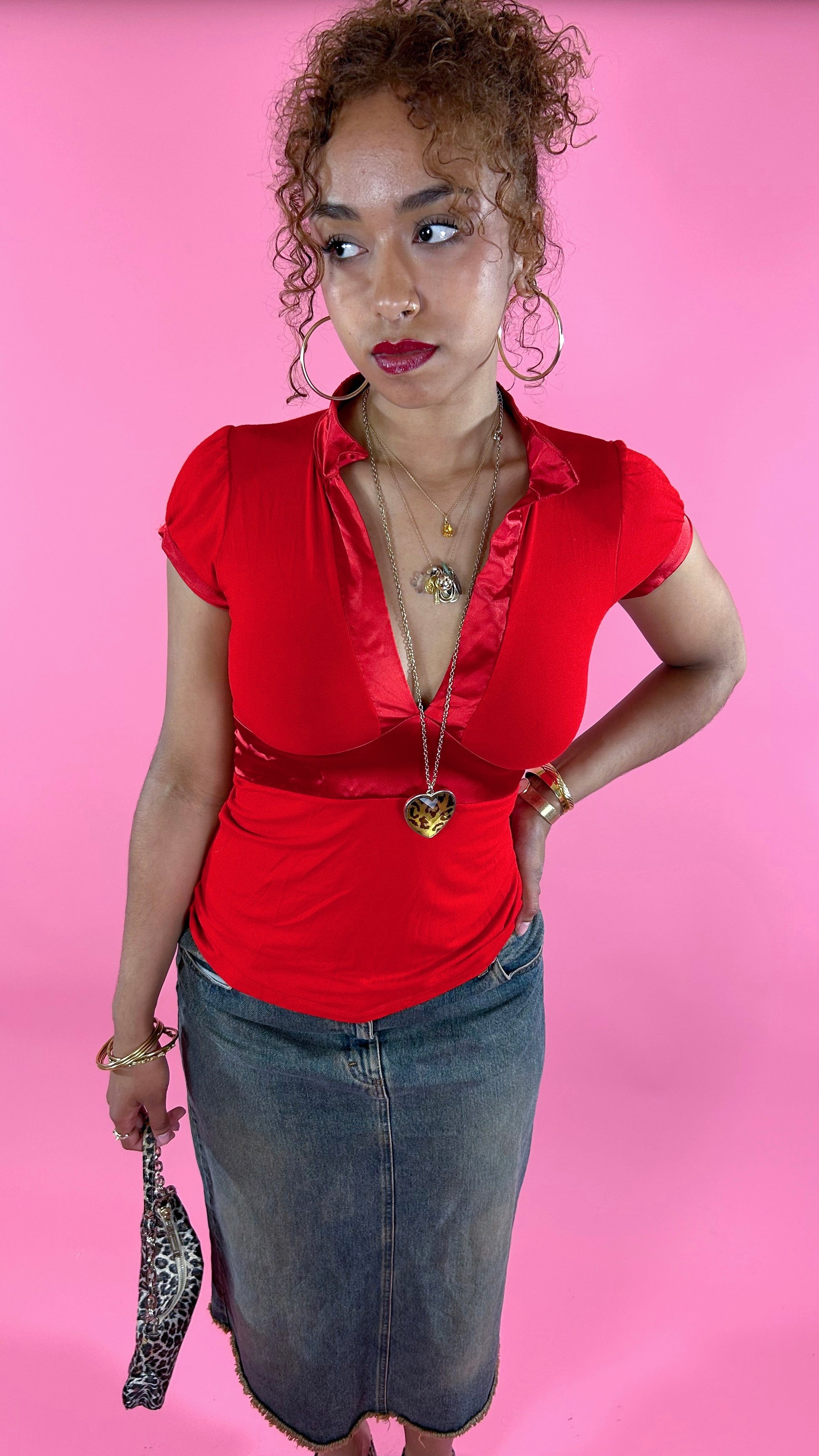 Top décolleté rouge avec noeud dans le dos
