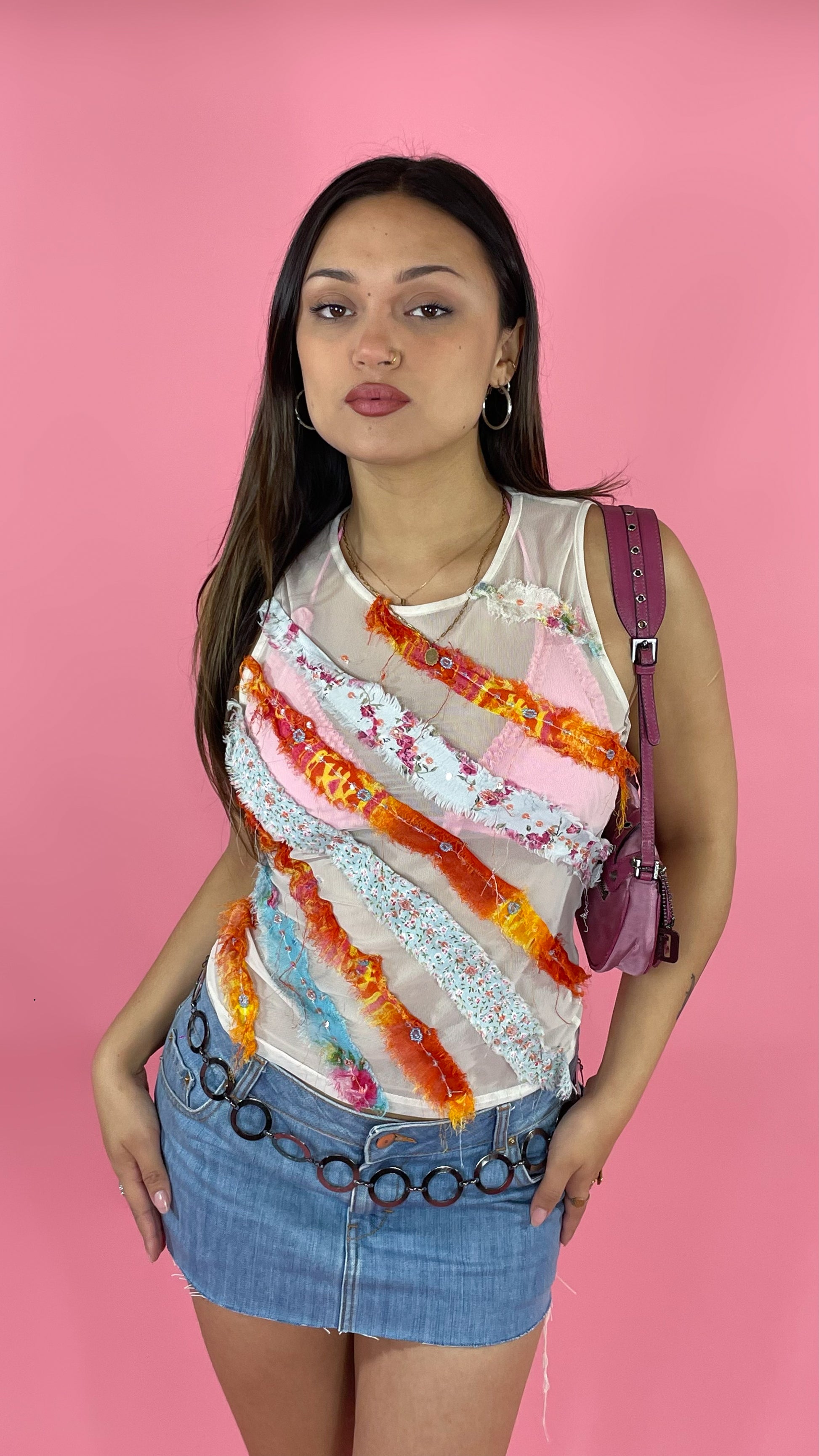 Débardeur blanc mesh détails colorés Morgan vintage.