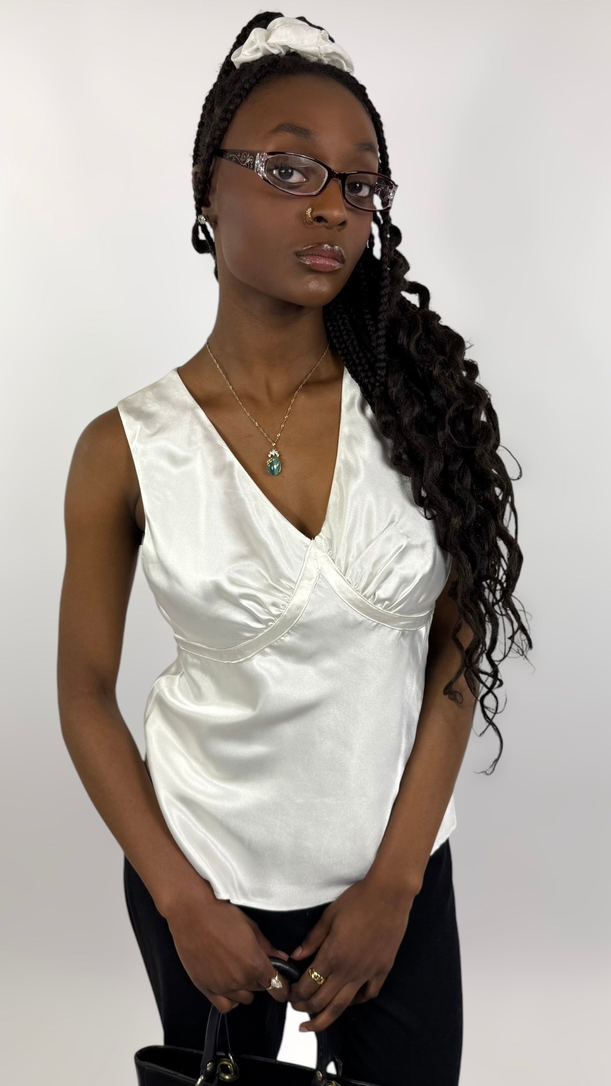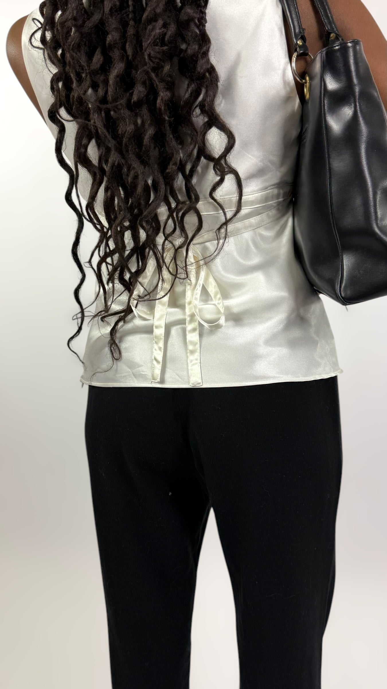 Top sans manche satiné, à nouer à l’arrière, fermeture éclair sur le côté