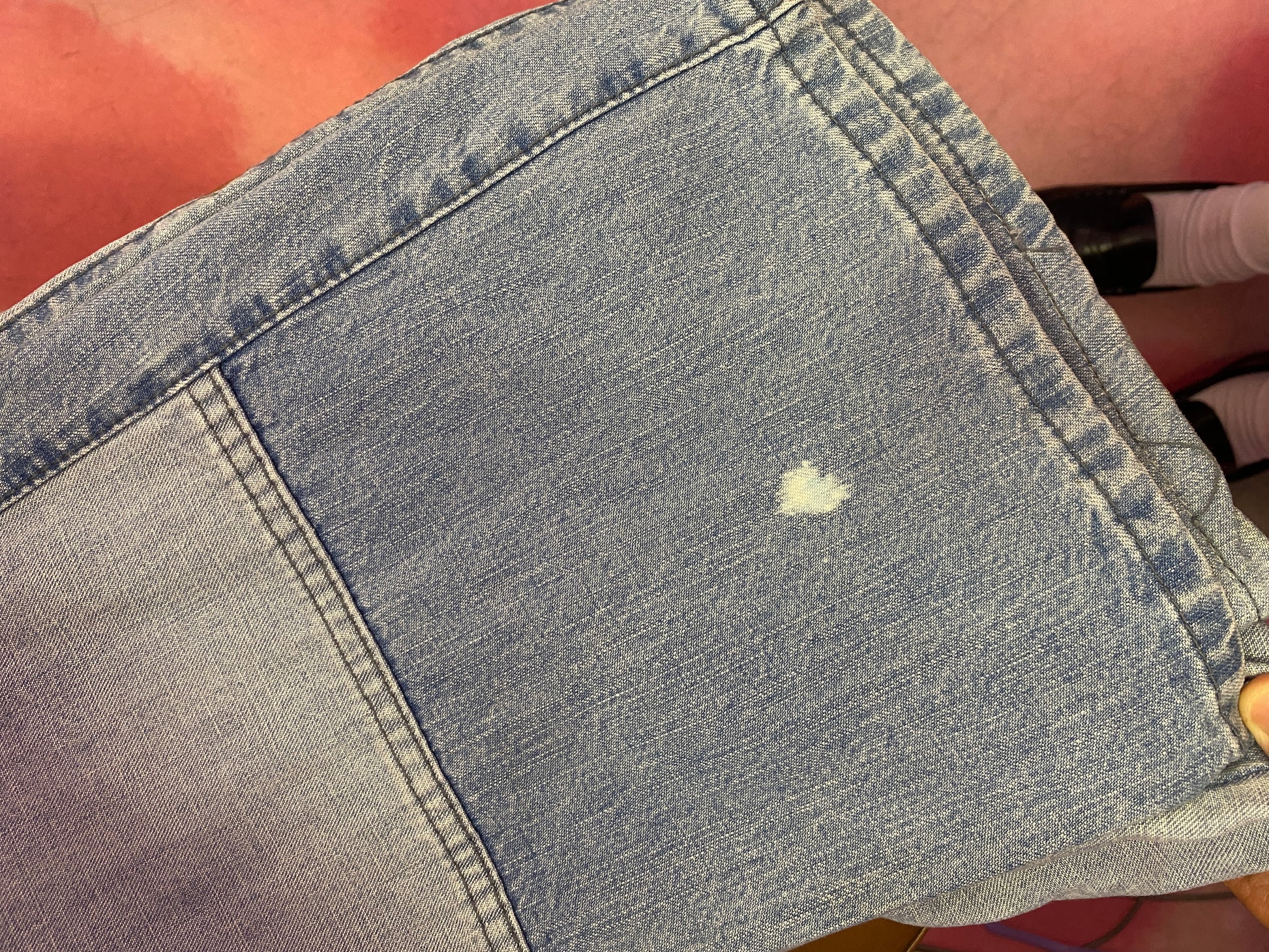 Jean bleu clair évasé avec des boutons devant. Il y a une petite tache en bas (dernière photo).