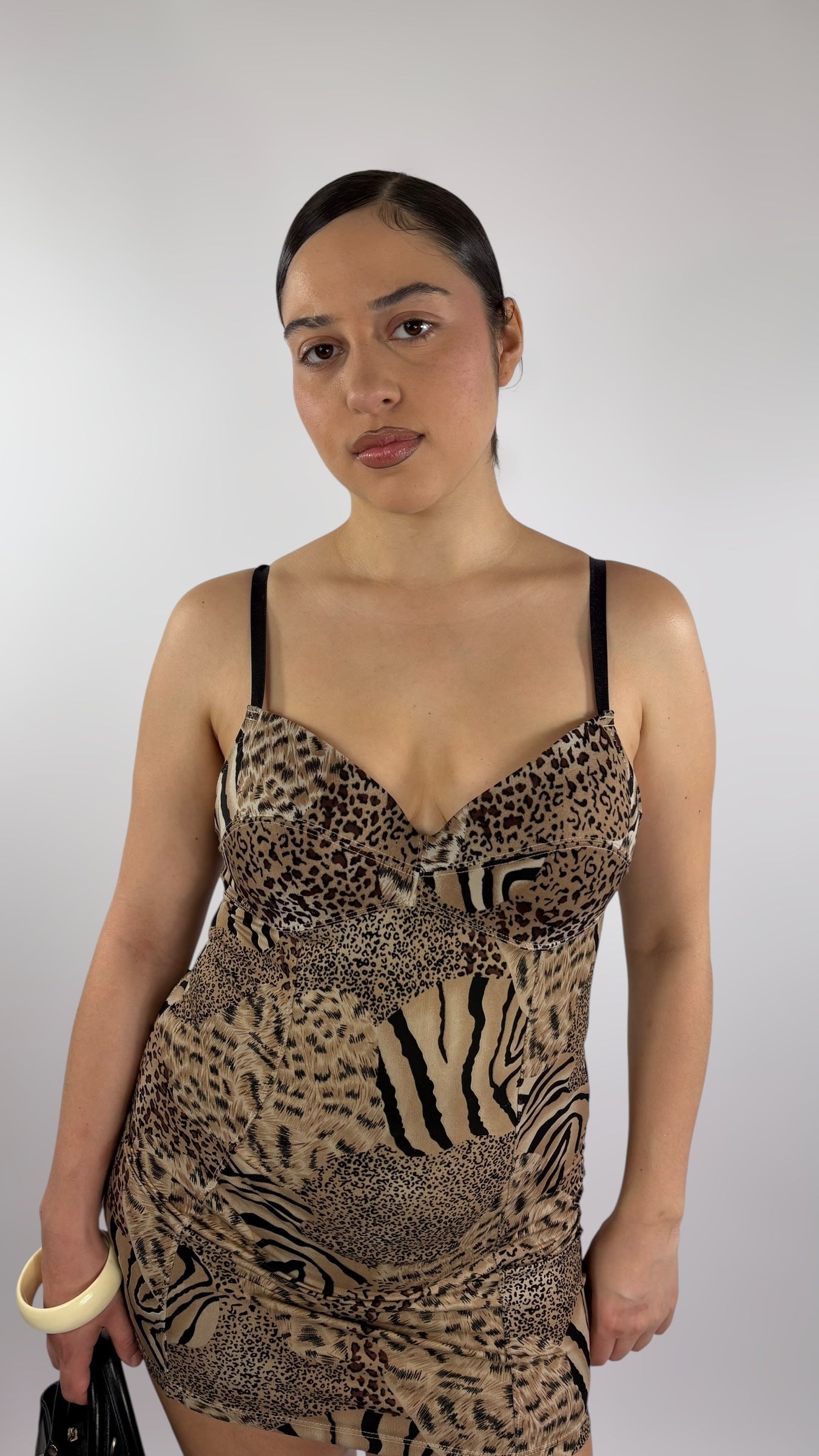 Mini robe nuisette léopard, soutien-gorge intégré, matière élastique