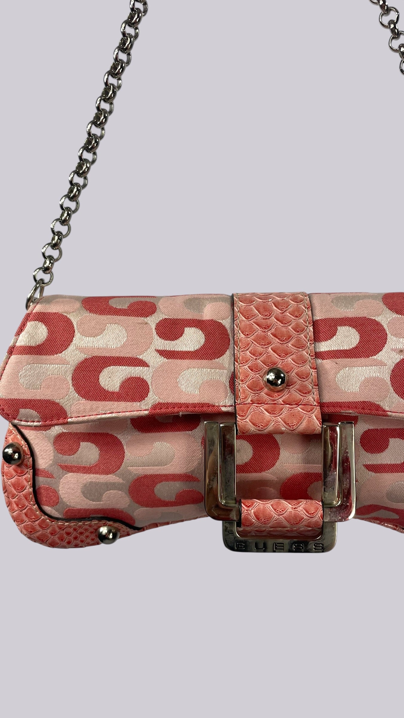 Sac Guess Vintage corail à monogramme avec dès details en similicuir motif serpent.