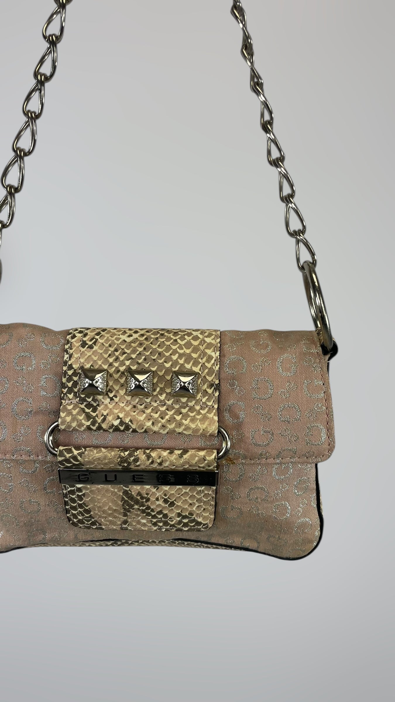 Sac Guess Vintage saumon petit taille à monogramme avec détails en similicuir motif serpent doré.