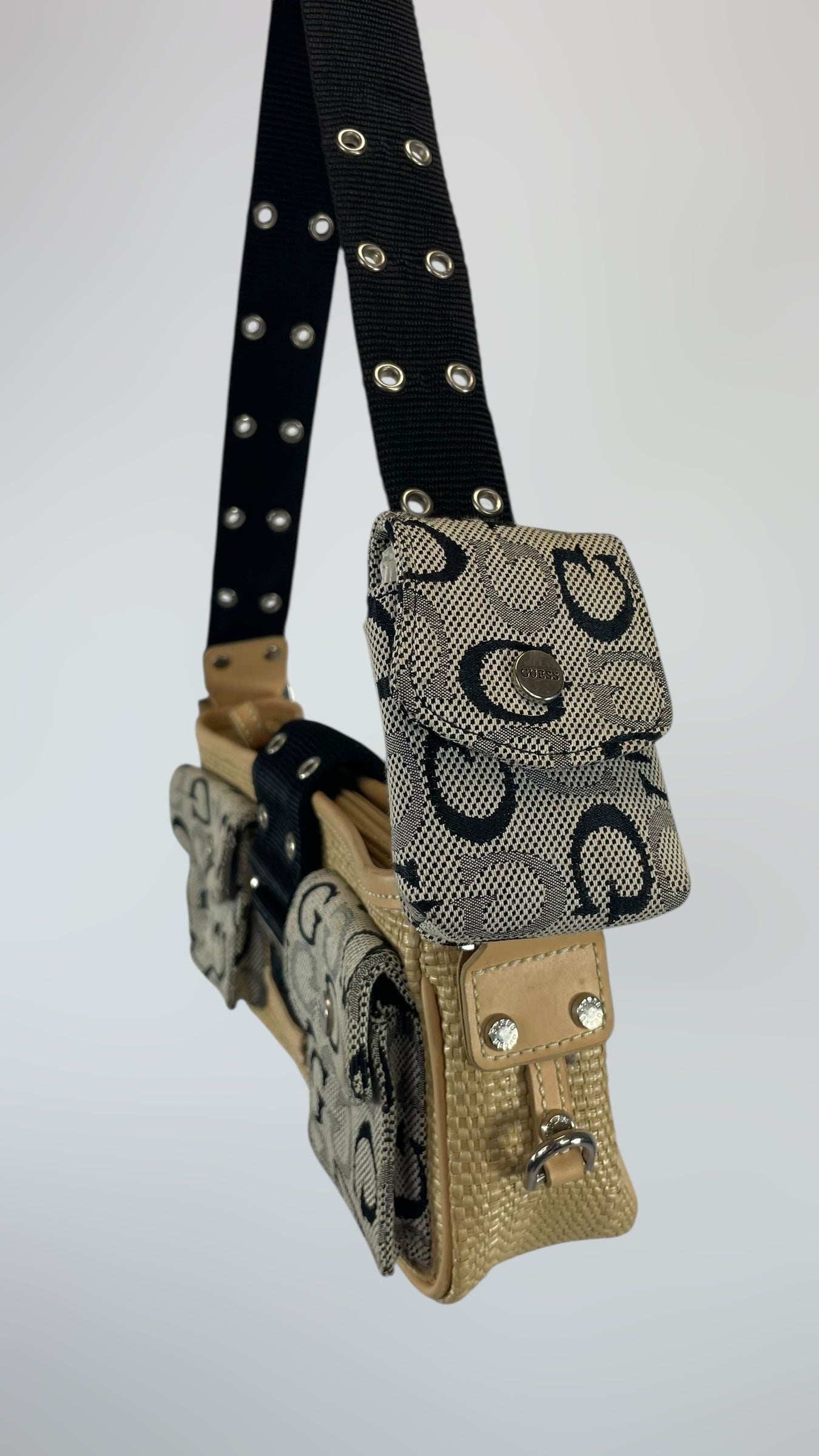 Sac Guess Vintage en paille beige et poches en monogramme.